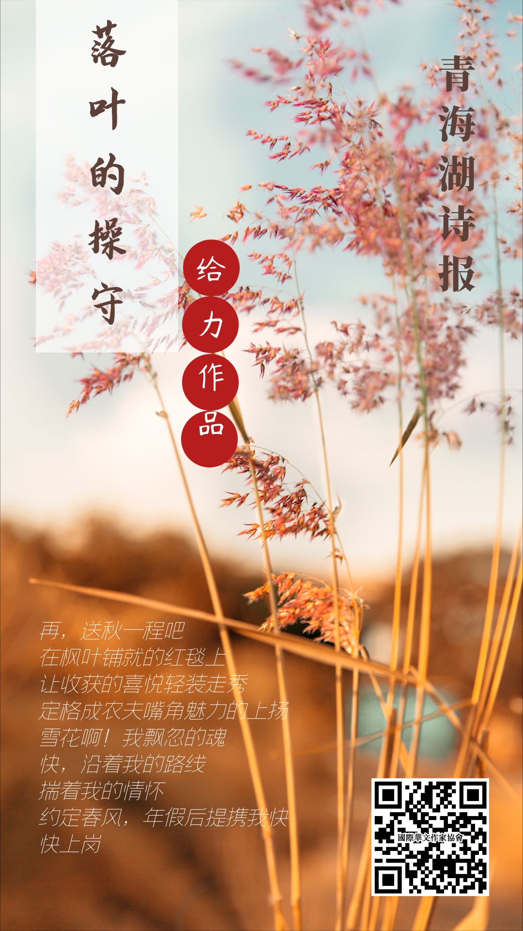 本网(海西文学网)为《青海湖诗报》、《青海湖诗刊》、《华文作家月报》等纸质刊物的选稿窗口,作者可以自由创作和投稿,除人工审核标注推荐的作品外,皆为作者自由投稿,未经编辑人工审核,由系统自动审核发布,其作品内容不代表华协立场和观点,其作品质量仅代表作者本人的创作水平,也不代表华协旗下所有网站和刊物的编辑所认可的创作水平。著作权说明