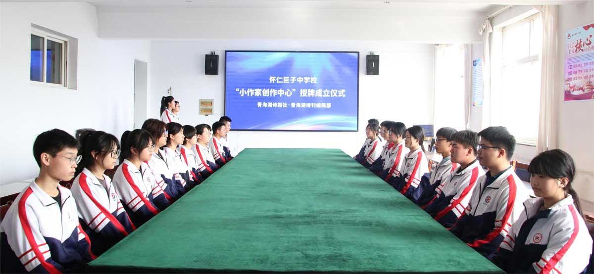 揭牌仪式上,国际华文作家协会大中华区、青海湖诗报社相关领导和怀仁巨子中学校长曾波共同为创作中心揭牌。国际华文作家协会会长、秘书长、总编辑童小汐亲笔题字祝贺。