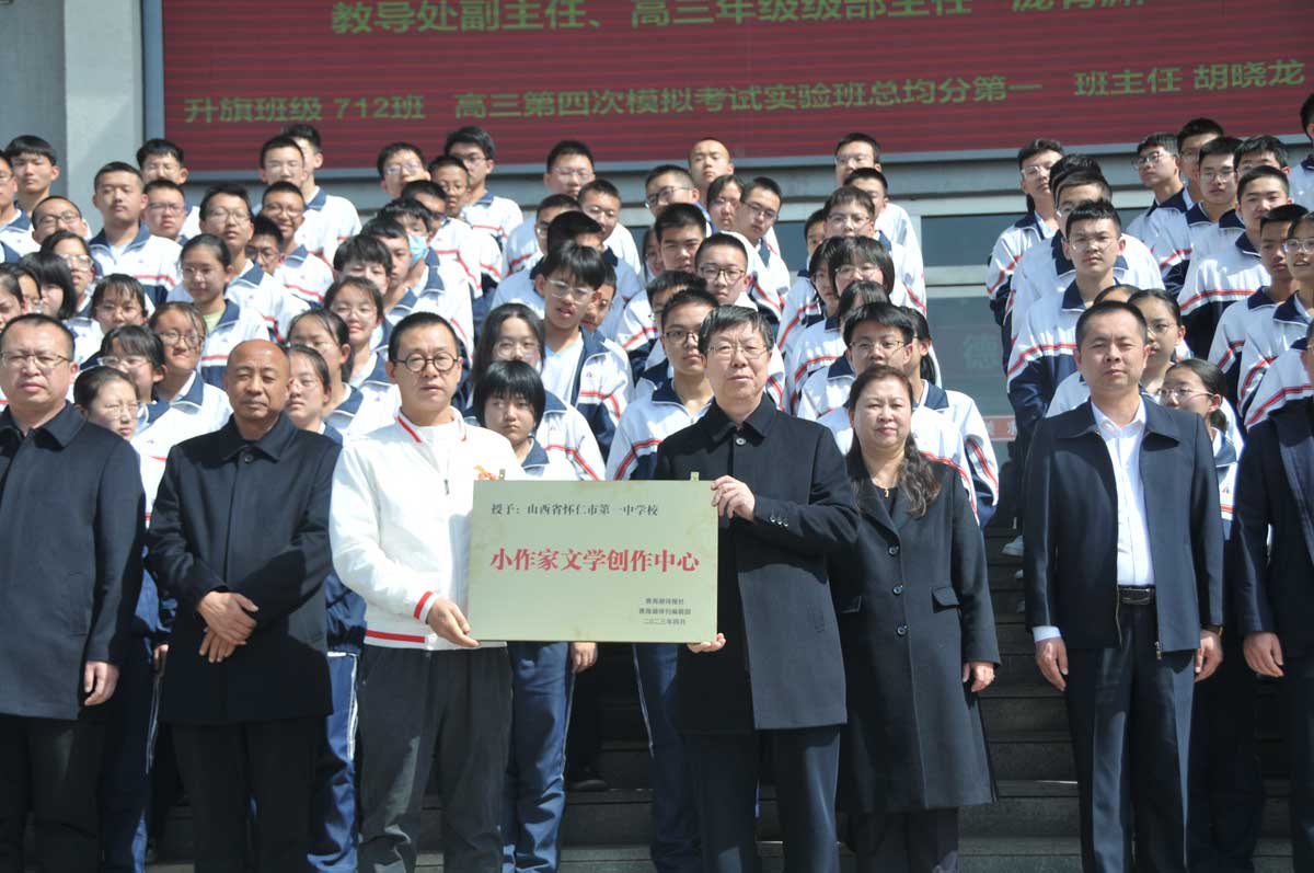 亲爱的同学们,生于斯、长于斯的怀仁,素有“中国德乡、幸福怀仁”和“怀德怀礼、怀善怀义”的美誉,不仅是杨家将浴血金沙滩的发生地,也是晋王李克用和辽太祖耶律阿保机议和的“怀想仁人”之地,更是新石器时期人类文明的重要发源地之一。我相信,“校园作家创作中心”的成立,标志着咱们怀仁一中校园文学创作掀开了新的一页,希望怀仁一中的爱好文学写作的同学们,通过自己手中的笔,描绘历史悠久、人文荟萃的家乡,记录勤学、诚朴、自强、奋进的青春,宣传崇学、尚美、求实、创新的母校!