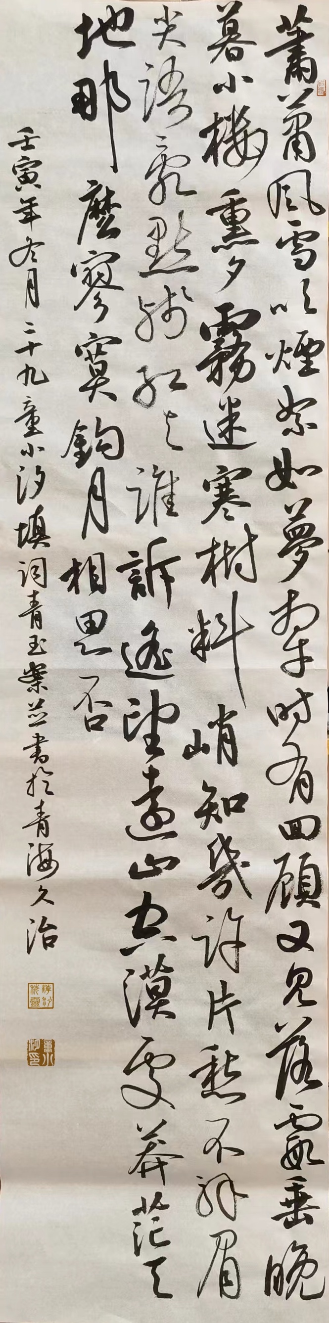 壬寅年冬月二十九童小汐填词青玉案并书於青海久治