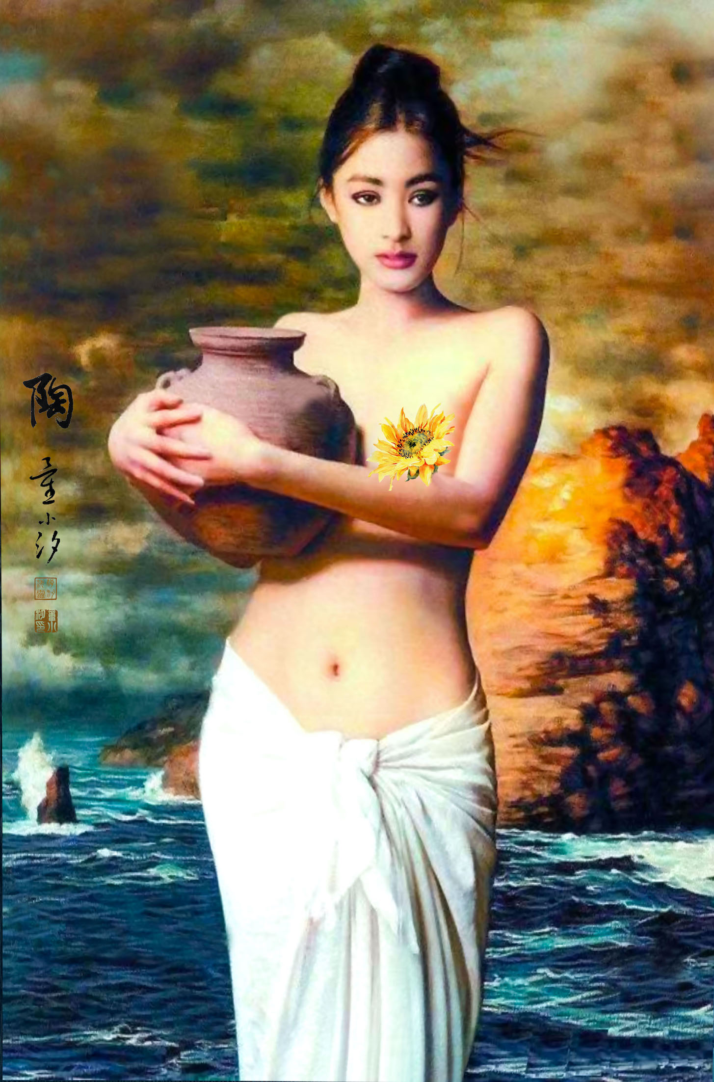 怀抱陶罐的少女